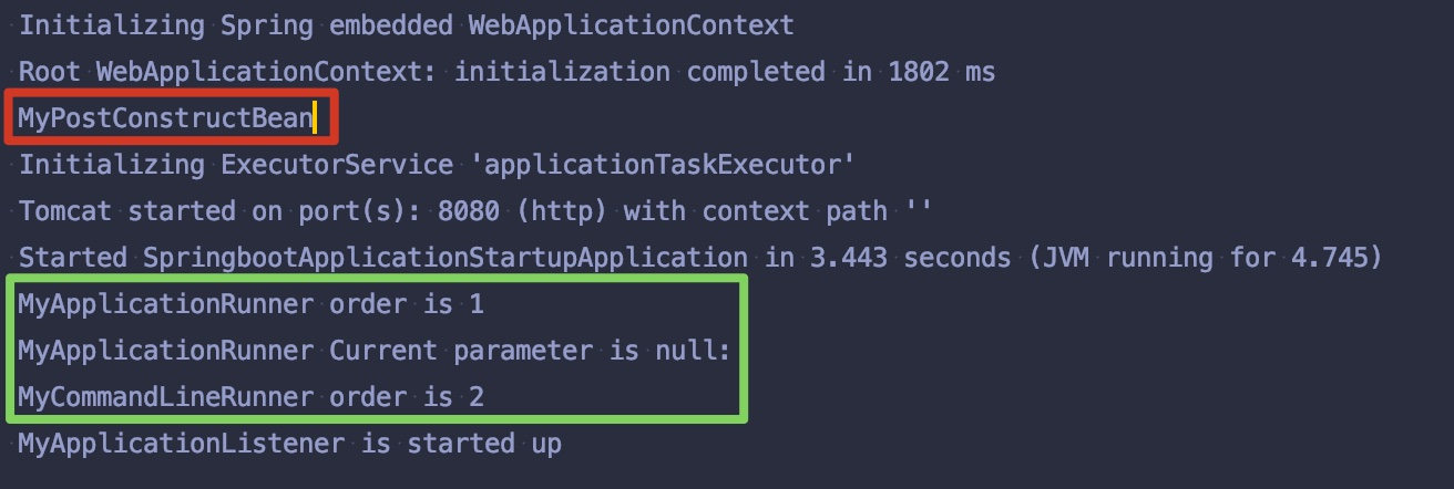 ApplicationReadyEvent当且仅当 在应用程序就绪之后才被触发,甚至是说上面的 Listener 要在本文说的所有解决方案都执行了之后才会被触发,最终结论请稍后看- 代码中我用