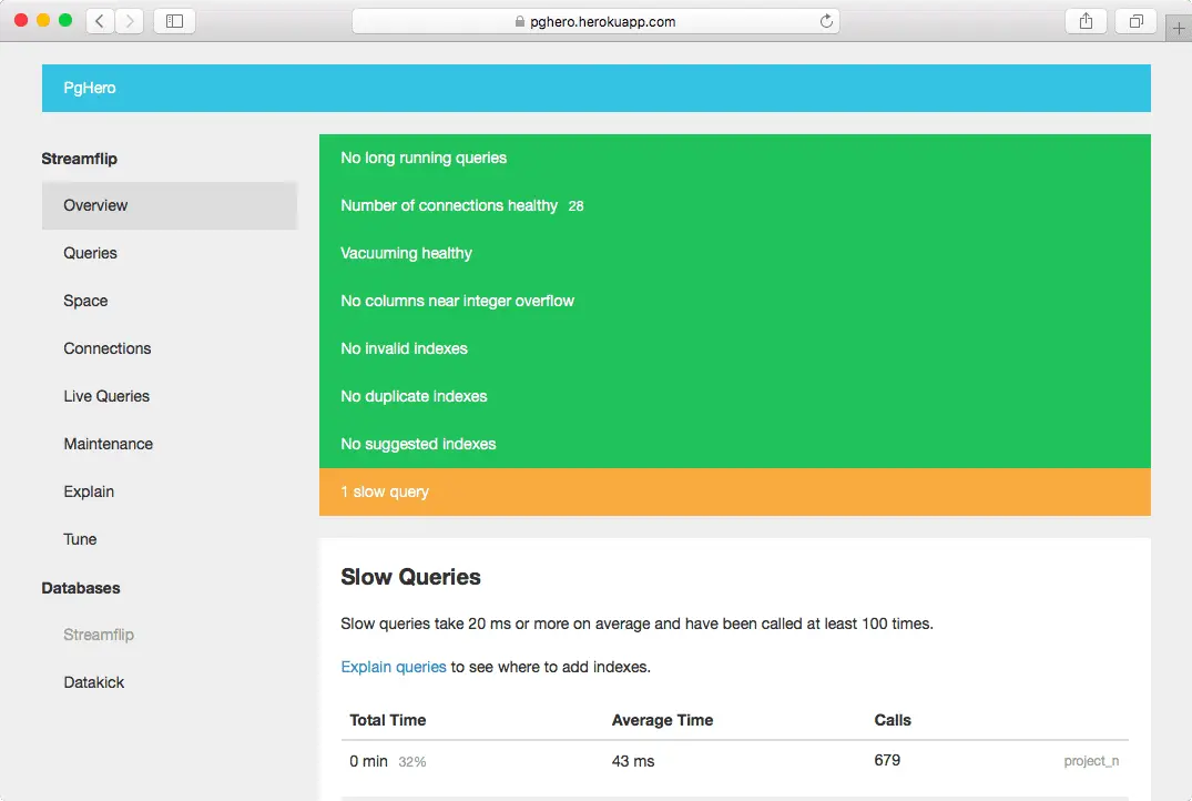 26、pghero:Postgres 性能监控服务。让你对 pg 数据库的性能了如指掌