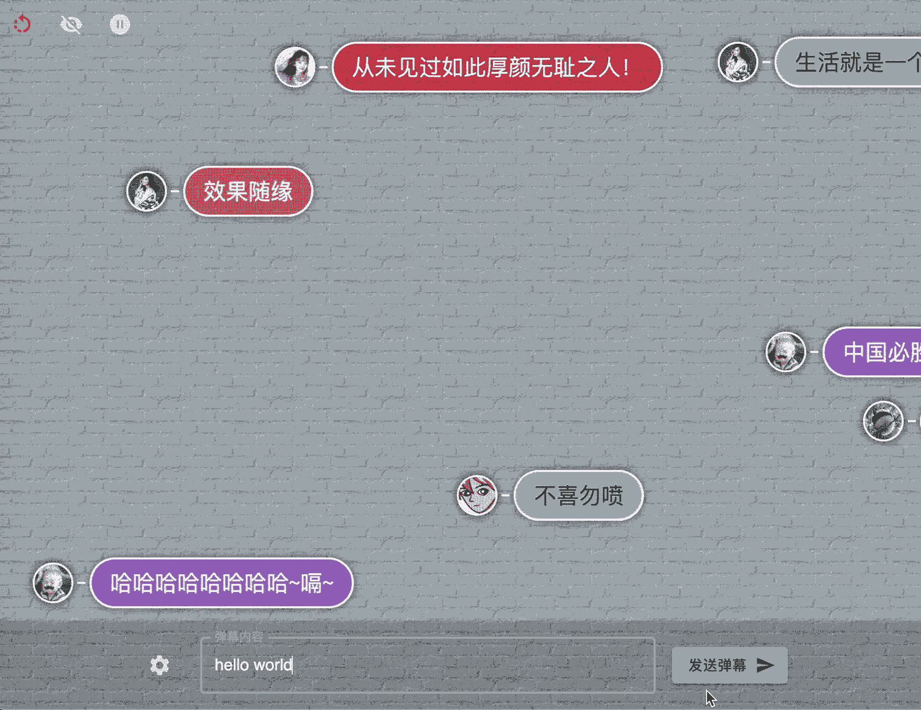 screen.push({msg:bullet,head:headUrl,color:"#eee" bgColor:"rgba(2,2,2,.3)"})