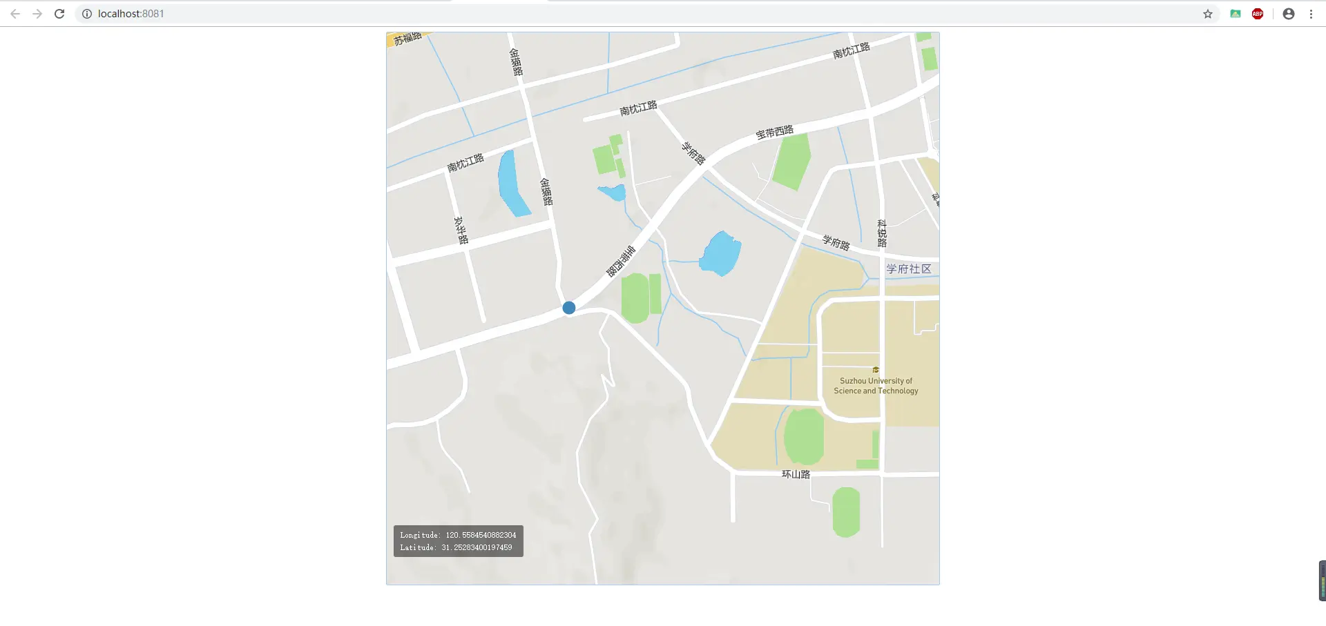 首先准备一个点的geojson数据,存为Point.json(这里我将坐标放在了苏科大石湖校区):