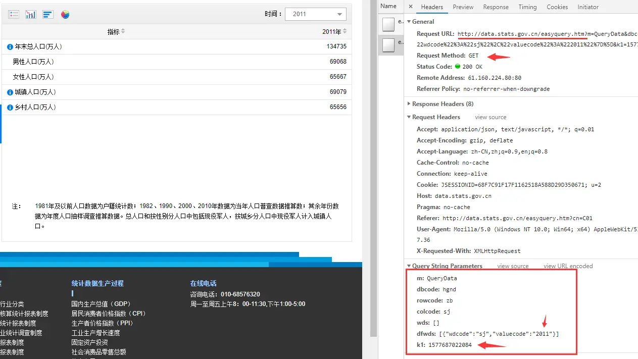 * 每一次真实请求请都要先请求一次以建立session 传参:总人口的valuecode=A0301 出生率的valuecode=A0302