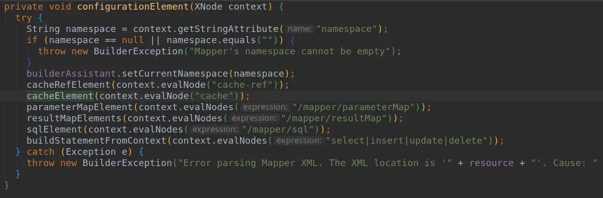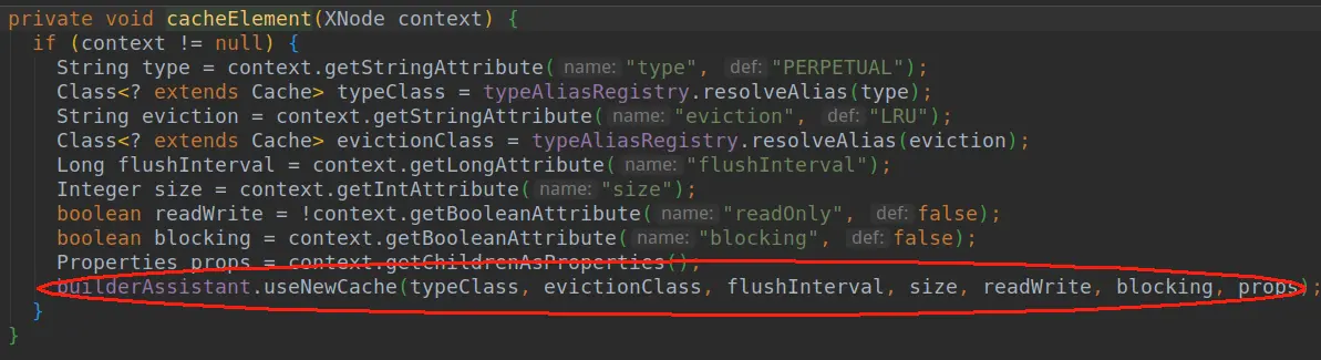 - 这个地方就是进行缓存存储的。我们再来看看mybatis是如何解析mapper.xml中配置的cache标签的。