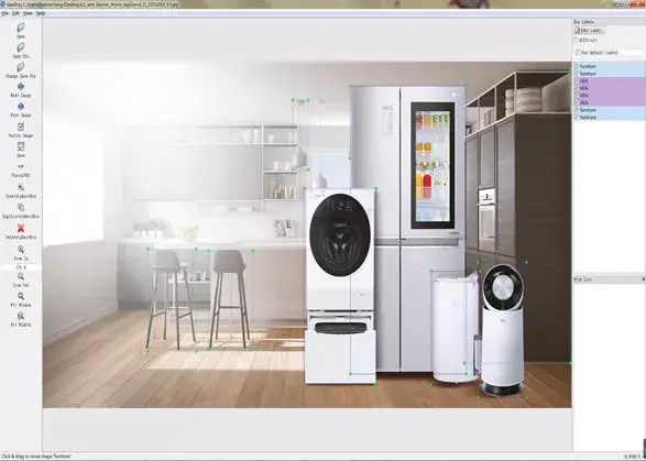 人工检测标注 常用的人工检测标注工具 labelimg 如下图所示,我们需要标注爬虫的商品库中 11 类商品出现的位置以及对应的类别标签。考虑到人工标注的时间和金钱成本都非常巨大,我们只采用该策略标注少量的样本,更多的采用后续的算法进行自动检测框标注。