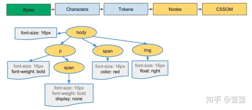 同理HTML解析器在遇到内联style标签时,也会触发CSS解析器对样式内容的解析。 CSSOM树的构建与DOM树构建是并行的。