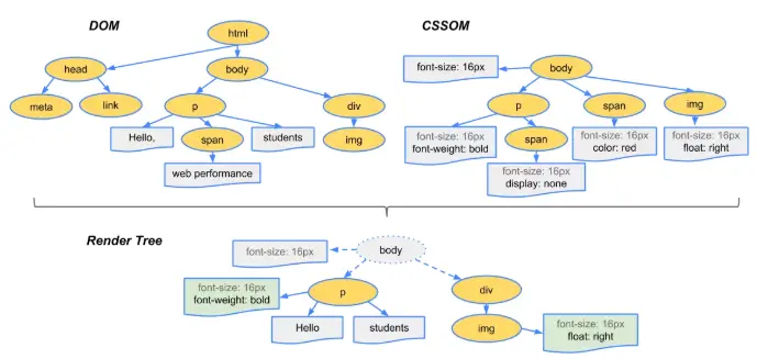 主要是通过DOM API和CSSOM API来操作DOM Tree和CSS Rule Tree. 加载JS脚本会阻塞DOM树和CSSOM树的构建。