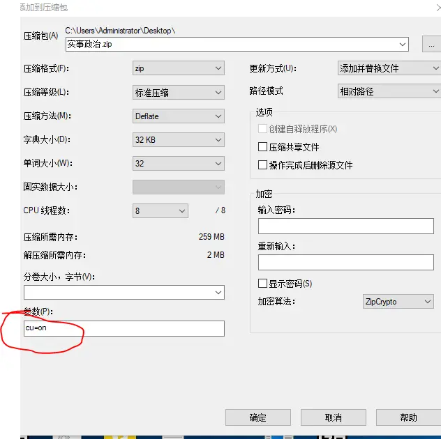 如果实在不想不打勾的,交一个方法,就是使用7zip压缩的时候在参数里加个cu=on
