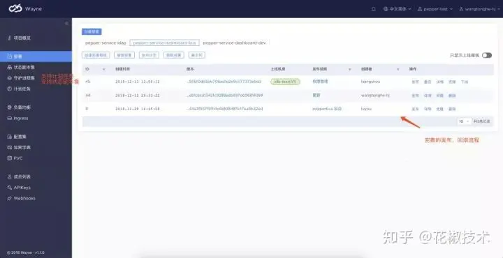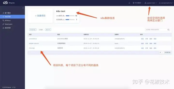 我们在使用自建集群的过程中,由于官方的dashboard操作yaml的学习成本很高,所以我们使用了wayne这个开源的k8s管理项目,其功能包含但不限于dashboard的功能,权限管理,人员划分,部门划分等,属于是一个面向大型项目团队的k8s集群管理后台,以下是一些实例