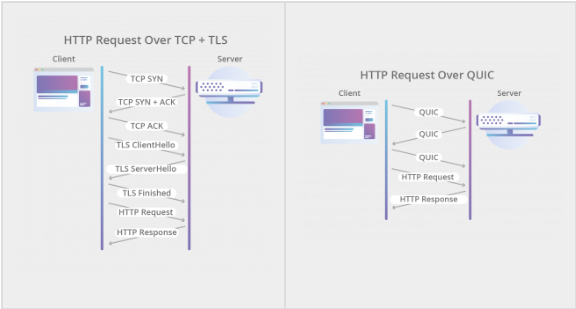 - HTTPS 握手通常需要六次网络交互,QUIC 直接将 TLS 和 TCP 合并成了三次握手