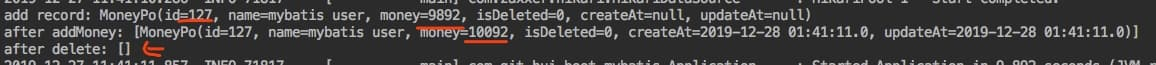 System.out.println("after addMoney: " + moneyMapper.findByName(po.getName()));