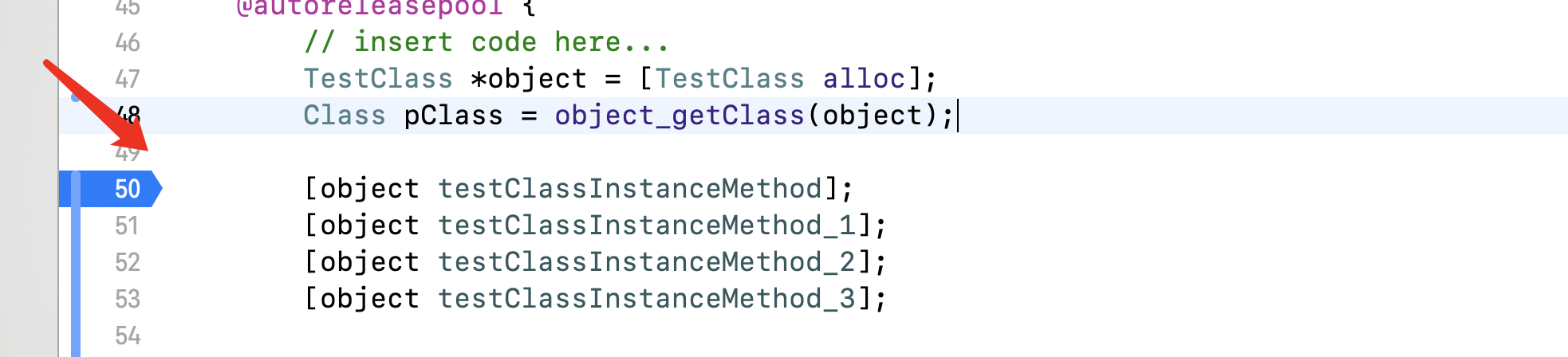 既然知道 cache_t 成员所代表的含义,那现在通过 lldb 调试一下,main.m 文件中,写入下方代码。