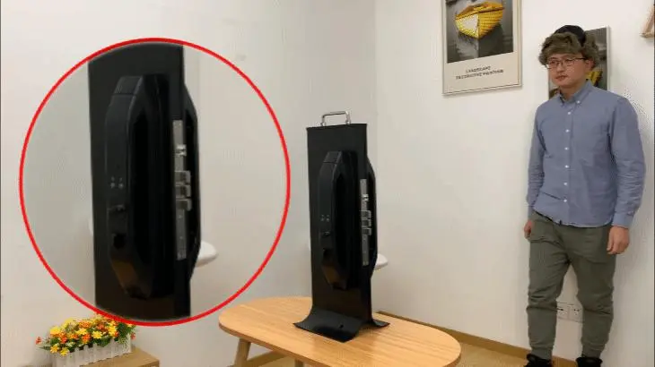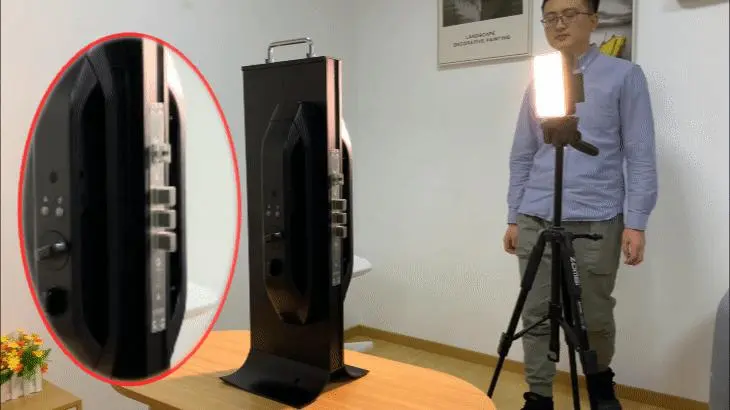 一般情况下,门锁安装后距离地面的高度大约在 1m 左右,而家庭成员在身高上可能会存在比较大的差异,由于测试的门锁是安装在锁架上,可以通过调整它的摆放位置来模拟不同身高使用人群的使用情况。