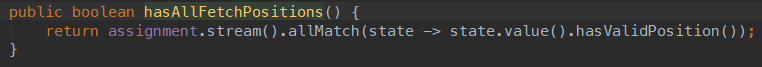 hasAllFetchPositions():判断是否所有的分区都存在有效的拉取偏移量