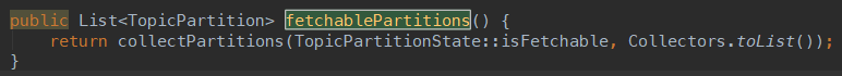 fetchablePartitions():获取允许拉取,即存在拉取偏移量的分区,用来构建拉取请求