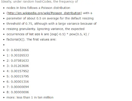 根据泊松分布,在负载因子默认为0.75的时候,单个hash槽内元素个数为8的概率小于百万分之一,所以将7作为一个分水岭,等于7的时候不转换,大于等于8的时候才进行转换,小于等于6的时候就化为链表。