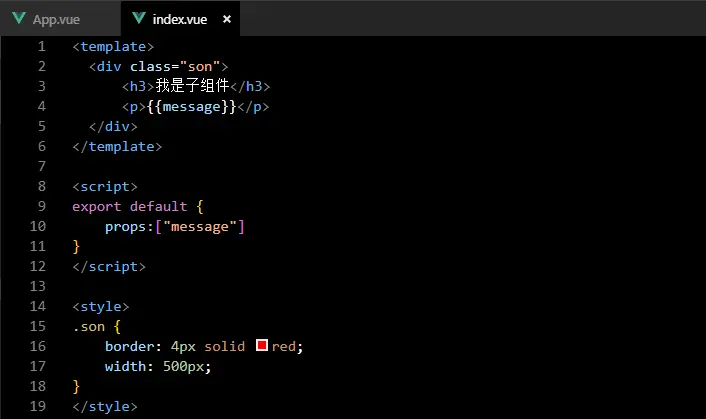 2.index.vue的中创建props,然后创建一个名为message的属性