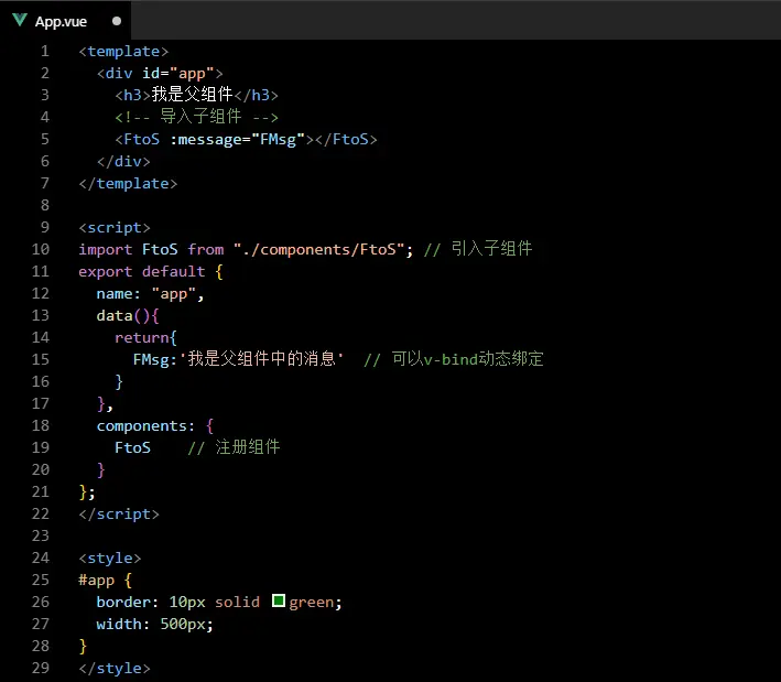 1.创建子组件,在src/components下创建FtoS(Father to Son 喜欢就好)文件,在FtoS下创建index.vue