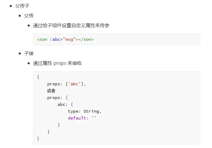 在组件传值中,无论是父传子、还是子传父,他们都有一个共同点就是有中间介质,子传父的介质是自定义事件,父传子的介质是props中的属性,抓准这两点对于父子通信就好理解了。