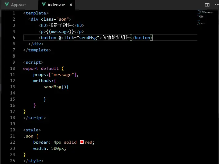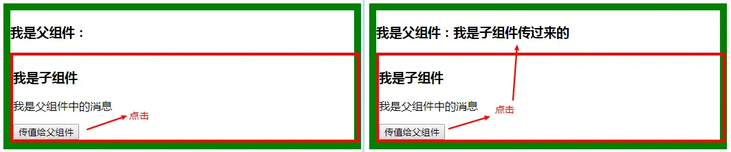 1.在子组件中创建一个按钮,给按钮绑定一个点击事件