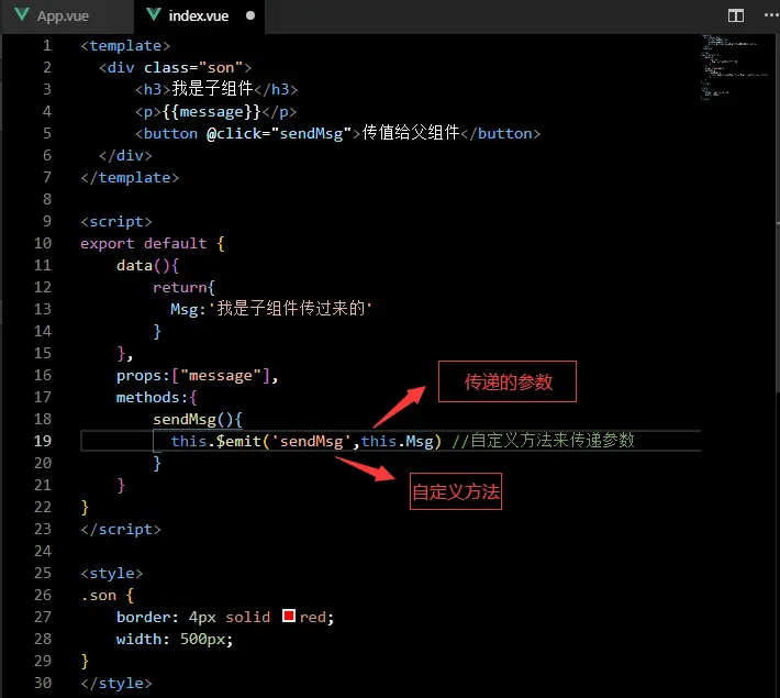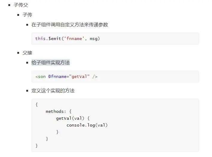第一步:子传(在子组件调用自定义方法来传递参数)