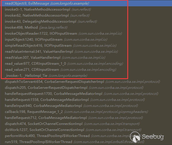 至于为什么进行了远程调用,在CDRInputStream_1_0.read_object下个断点,然后跟踪就会明白了,最后还是利用了rmi的远程加载功能: