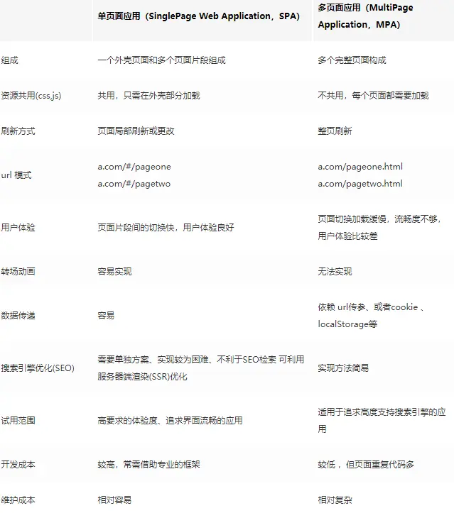 单页面(SPA)/多页面(MPA)