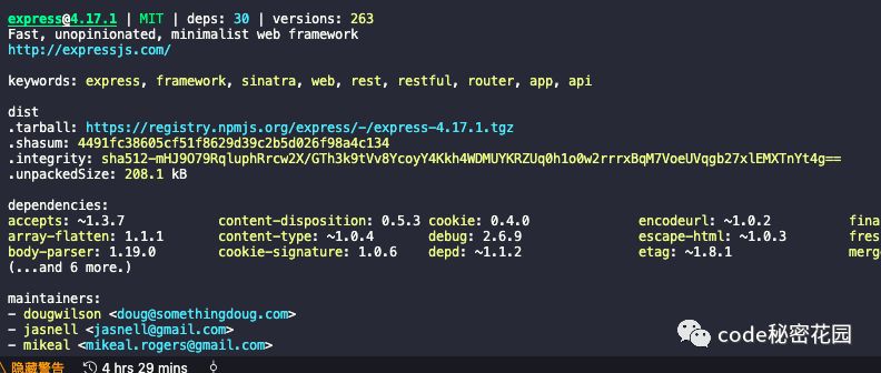 integrity:包hash值,基于Subresource Integrity来验证已安装的软件包是否被改动过、是否已失效 -