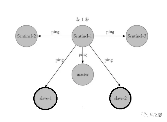 任务三:每隔一秒每个哨兵会向主从节点和其它哨兵节点发送一次ping命令做心跳检测,借此来判断节点是否正常。