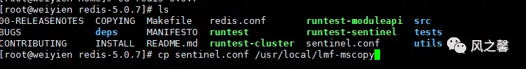 如果不知道主从怎么配置的可以查看redis 知识梳理(六),这里主要是针对sentinel进行配置。 1.从源码里把sentinel.conf复制到我们主从复制目录下