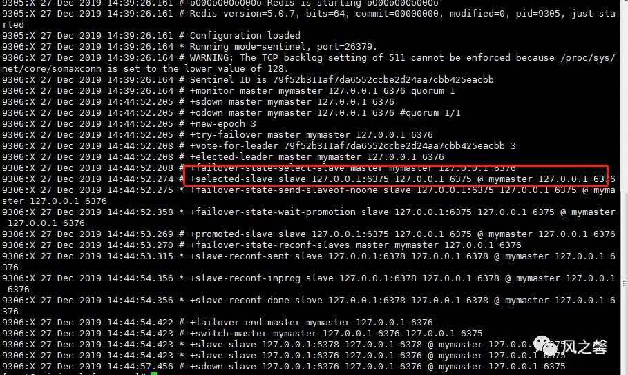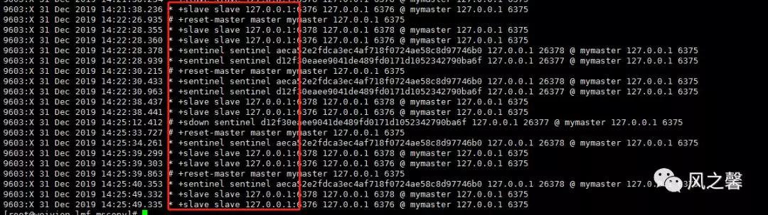4.查看sentinel.log对6376进行监控。查看redis的从节点信息。