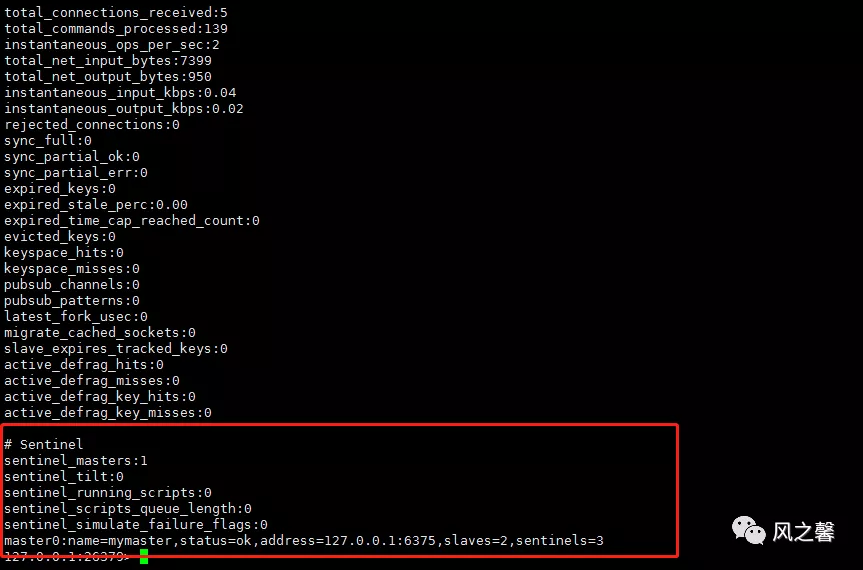 sentinel命令查看主从服务器信息 PING :返回 PONG 。
