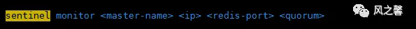 哨兵节点定期监控 名称为master-name可自定义 ip为监控节点ip(生产环境ip不要设置127.0.0.1或localhost) redis-port节点的端口号 quorum代表多少个哨兵认为节点故障了,才算主节点是客观下线。 port:哨兵实例运行的端口号 默认26379 dir:哨兵的工作目录 sentinel auth-pass