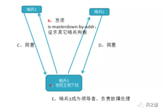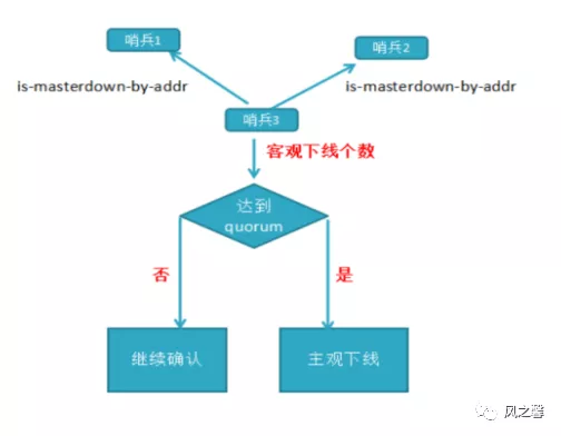 哨兵3节点会通过指令sentinel is-masterdown-by-addr查询其它哨兵节点对主节点的判断,如果其他的哨兵认为主节点主观线个数超过了quorum,哨兵节点则认为该主节点确实有问题线客观下线。
