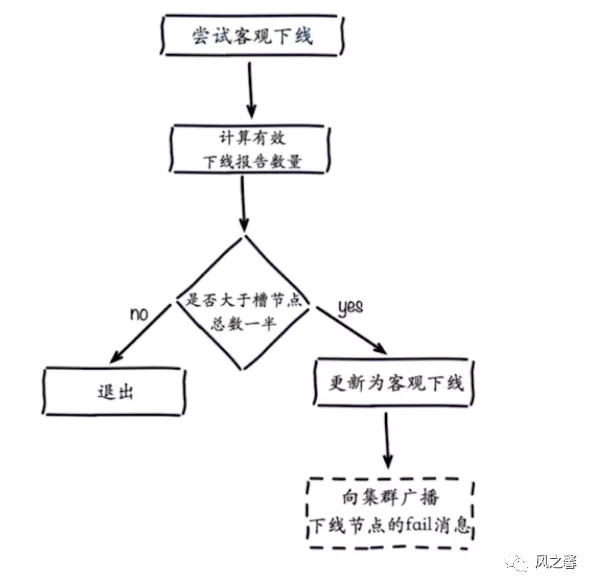 尝试客观下线:通知集群内所有节点标记故障节点为客观下线,通过故障节点的从节点触发故障转移流程。