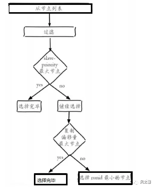 过滤中主观下线的节点,然后选择slave-priority最高的节点,有的话直接返回,没有继续选择。选择出复制偏移量最大的salve节点,因为复制偏移量越大则数据复制的越完整,如果有就返回了,没有就继续,选择run_id最小的节点,通过slaveof no one命令,把选择出来从节点更改为master,再通过slaveof命令让其它节点成为它的从节点。原来的主节点会设置成新从节点,等恢复正常以从节点角色加入。