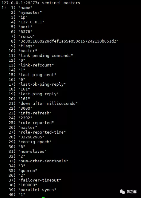 SENTINEL masters :列出所有被监视的主服务器,以及这些主服务器的当前状态;