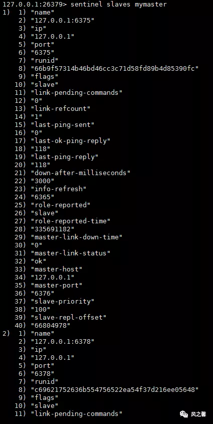 SENTINEL slaves :列出给定主服务器的所有从服务器,以及这些从服务器的当前状态;