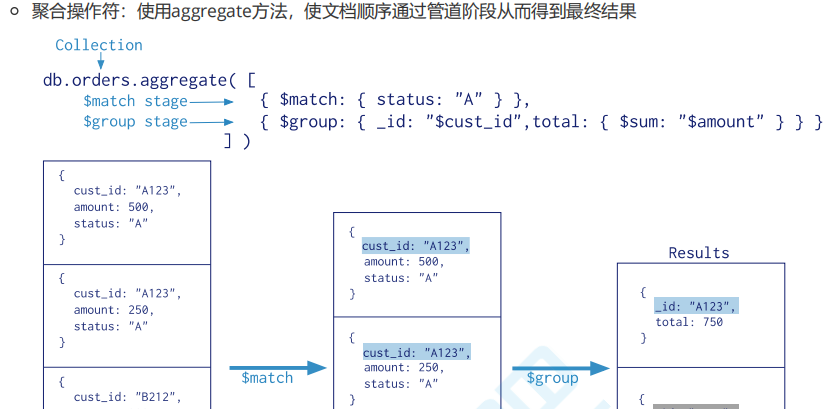 聚合操作符,使文档顺序通过管道阶段而得出