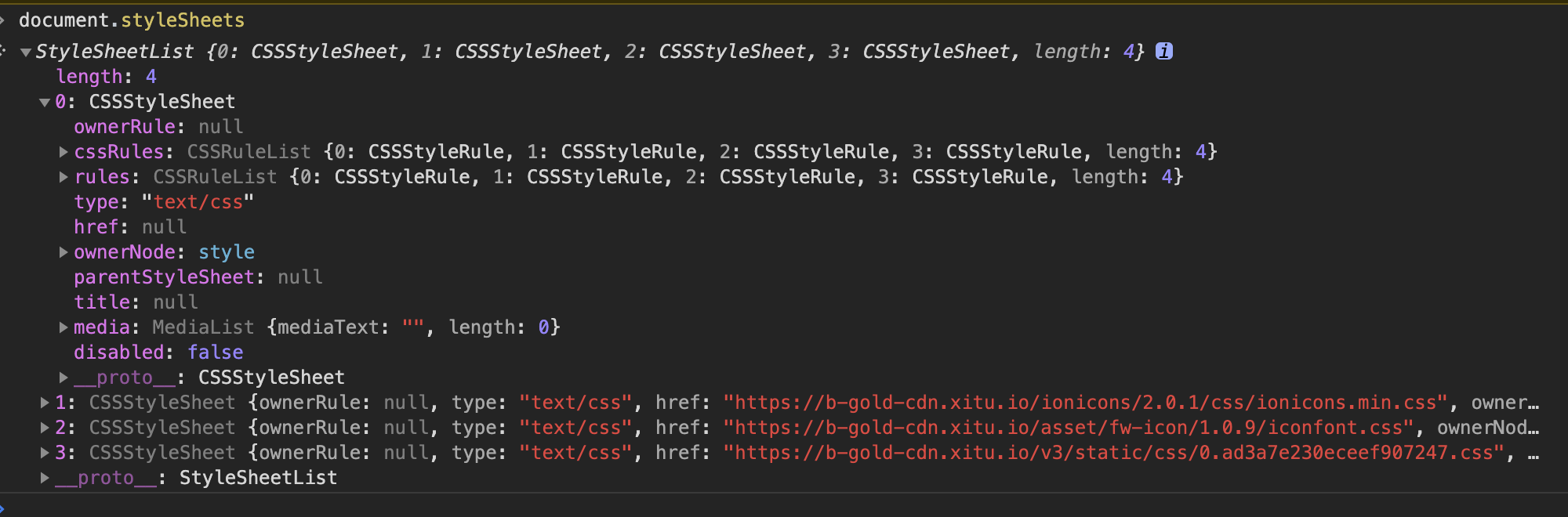 在chrome的开发者工具中能更清晰的看到styleSheets结构。