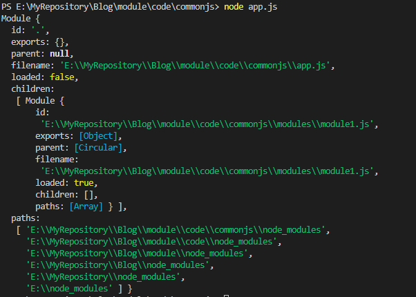 看这个对象的格式,key 应该是某些模块的完整路径及模块名字,value 应该是对应模块的module 对象; 第一个属性是当前模块的 module 对象;