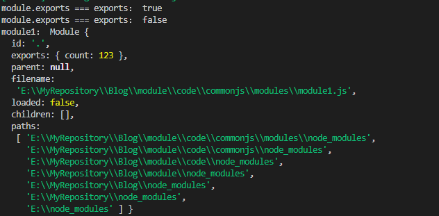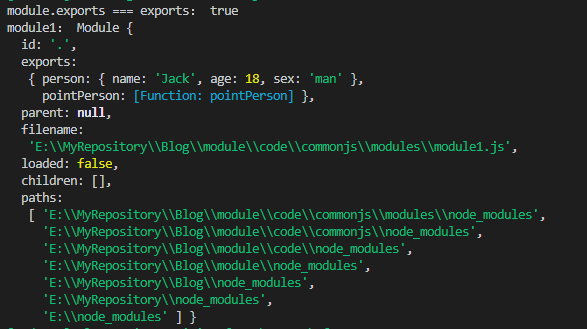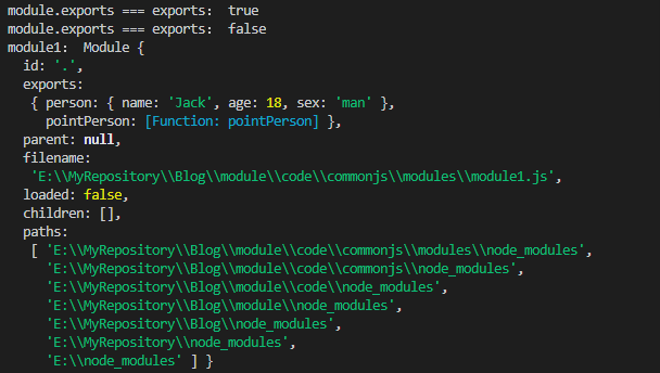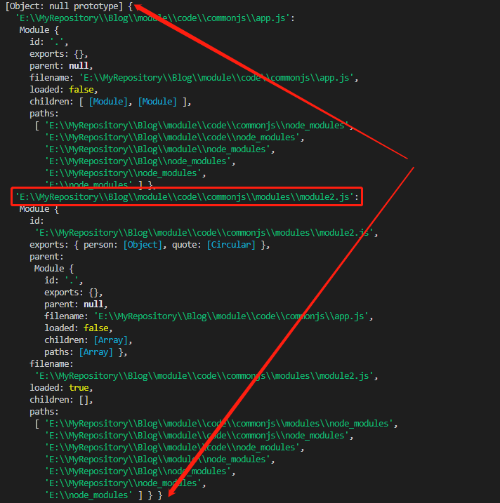 当我们直接获取 require.cache 对象中的 module2 的属性后,将它的 exports 属性,与 require 加载的模块比较,发现就是全等的;