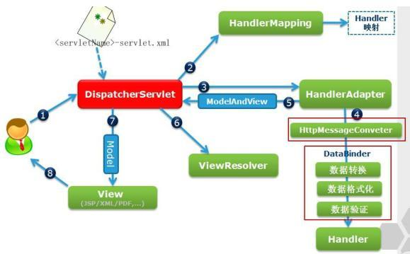 (4)HandlerAdapter 是一个适配器,它用统一的接口对各种 Handler 中的方法进行调用。