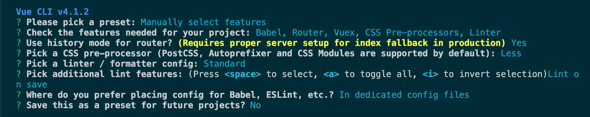 vue create test-project