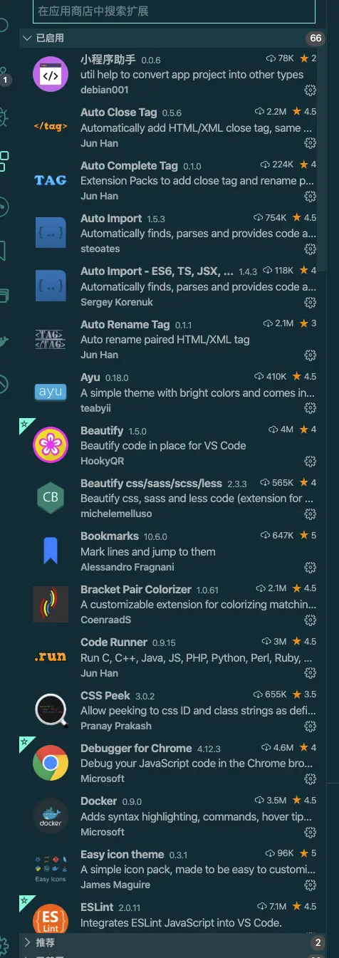 * Git History、Git Lens、Git Project Manager:这3个就是标准的打包为vscode集成的git服务的。因为本身习惯使用git bash 来操作git的原因所以并未深入研究。不过喜欢方便的小伙伴还是推荐稍微研究下并不难。
