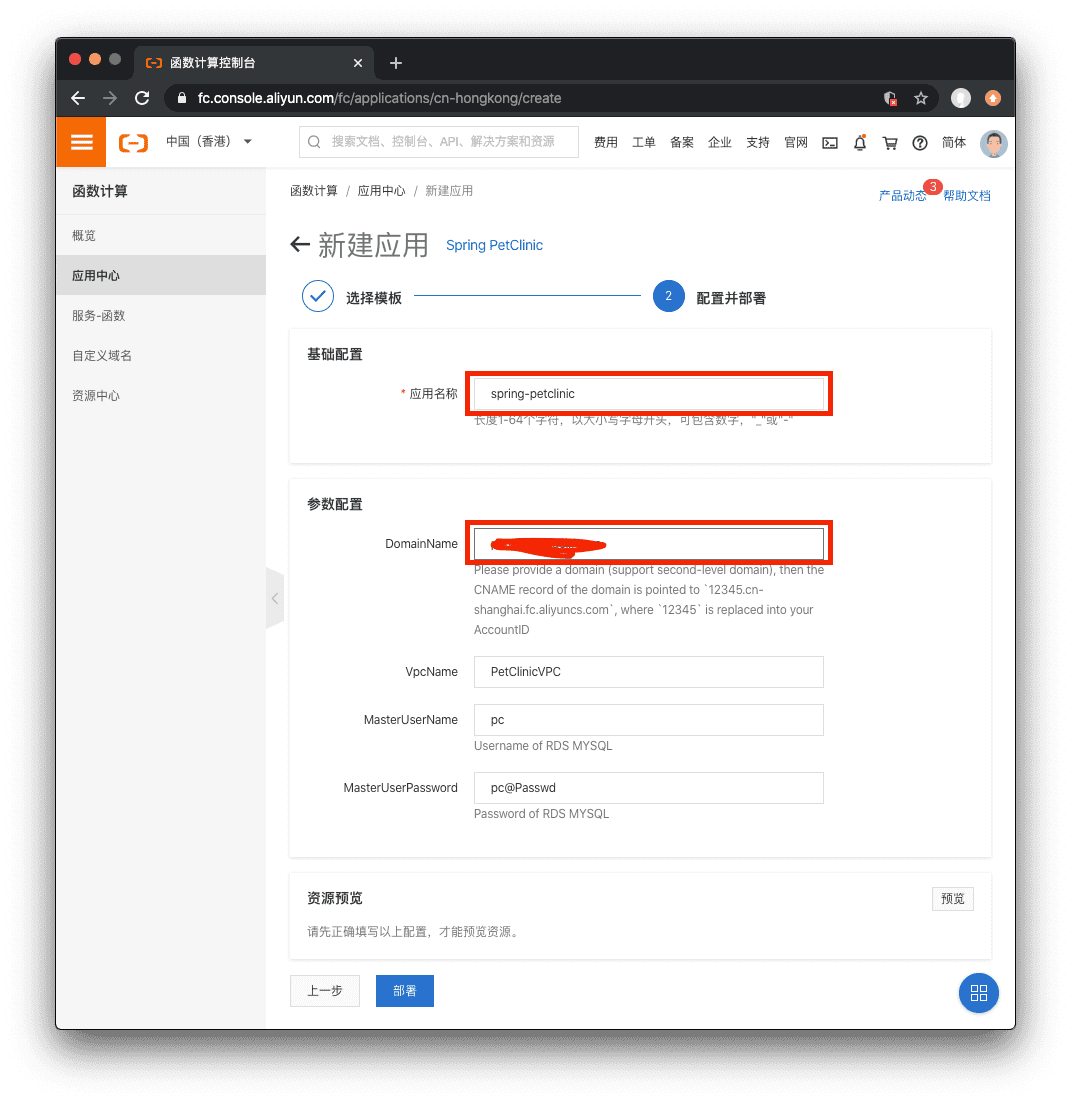 下面我们借助于函数计算的应用中心,快速地将 Spring PetClinic 快速部署到函数计算平台。