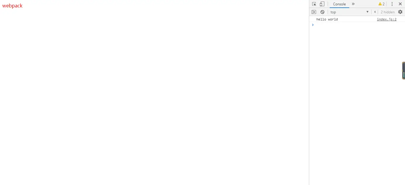 运行 npm run dev,打开我们的 index.html 预览,不出意外的话,结果应该和我一样,页面的 webpack 文字变红,控制台输出 hello world;