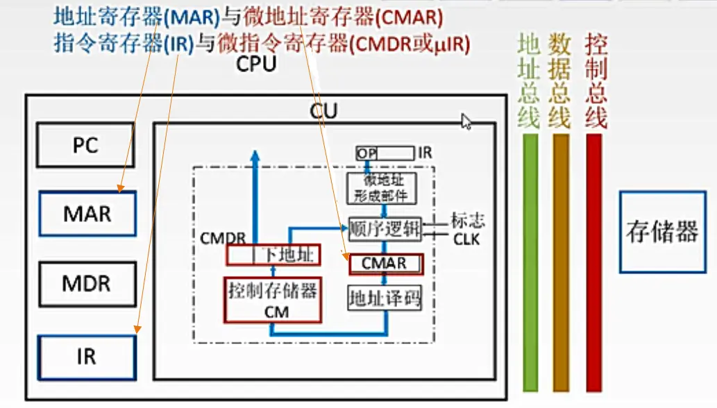 - 微程序:多个微指令的有序集合。等价于机器指令。