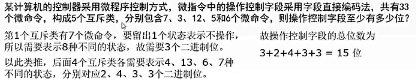 - 微指令:指控存储器中的一个单元的内容,即控制字。多个微命令构成微指令。至少包含以下两部分信息。