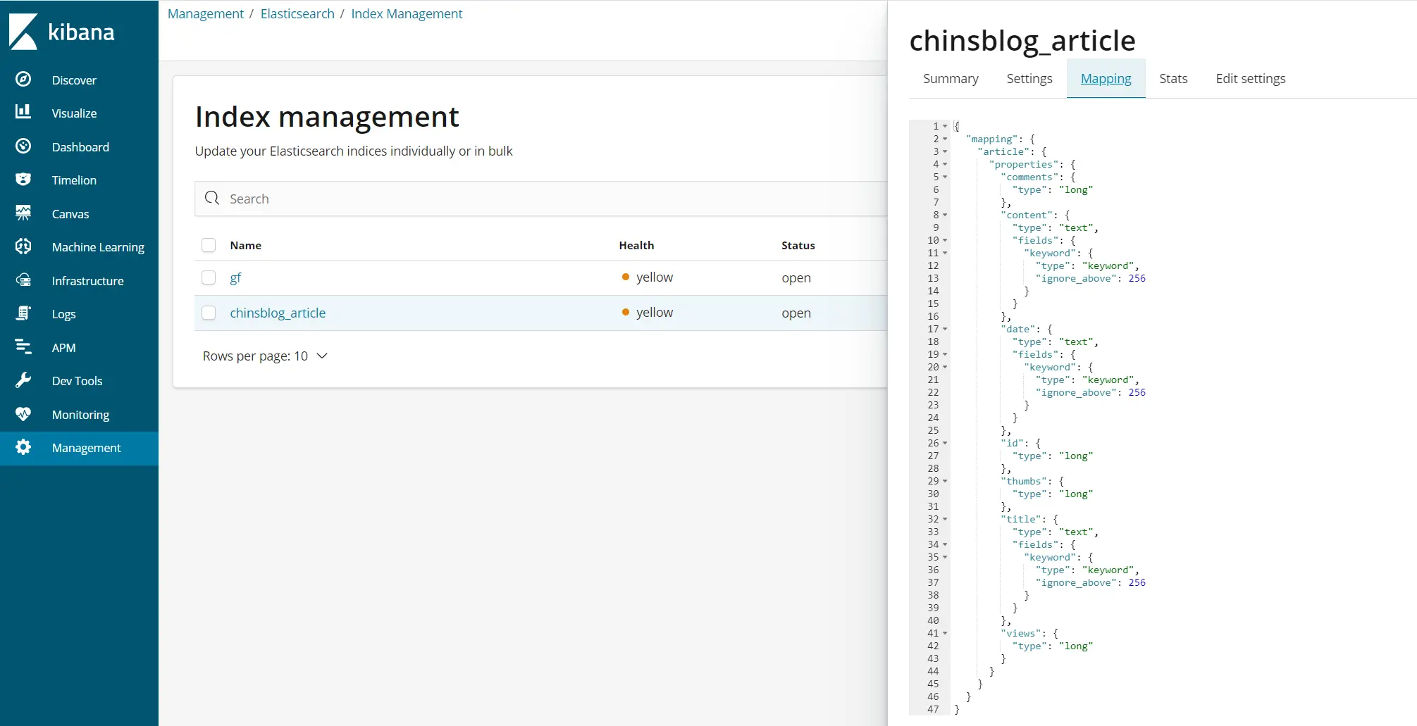 所以现在的kibana上面可以看到我elasticsearch里的索引和数据