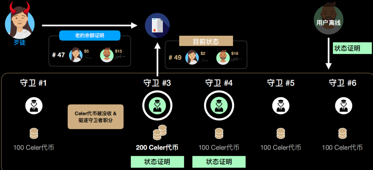 一 如何利用Celer的状态守卫者网络解决对离线用户进行恶意结算的问题;