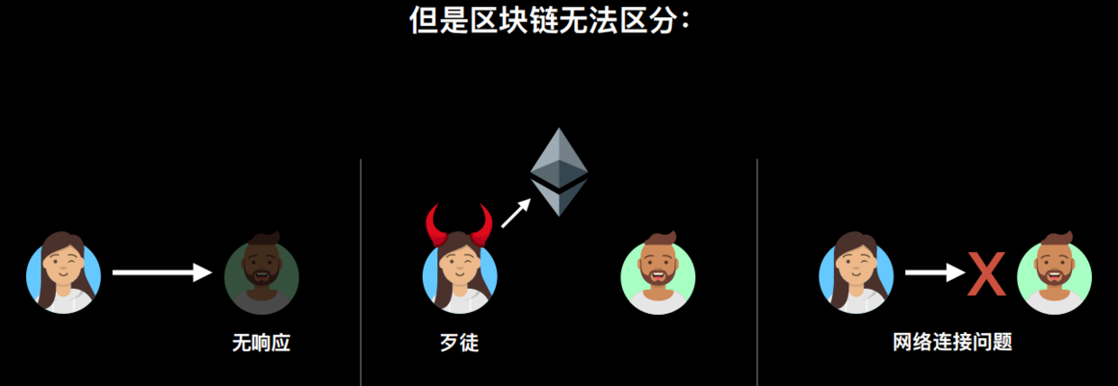 于是Alice向链上发起lian连接性争议仲裁,但是作为链上智能合约需要惩罚Bob吗?对于任一个连接性争议仲裁,链上智能合约是无法区分以下3中情况的: